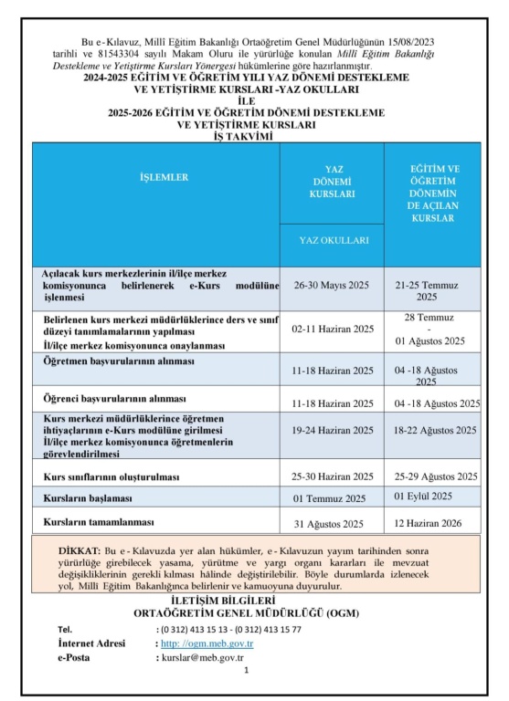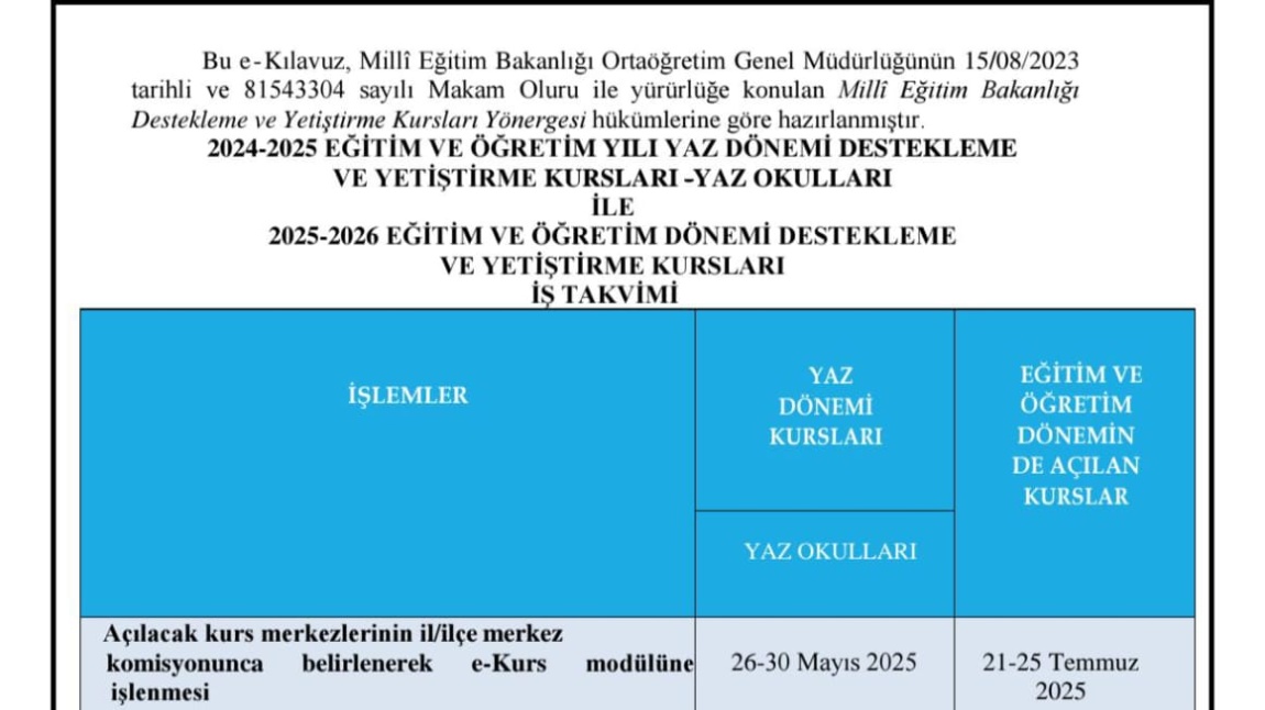 2025-2026 Eğitim ve Öğretim yılı DYK İş Takvimi